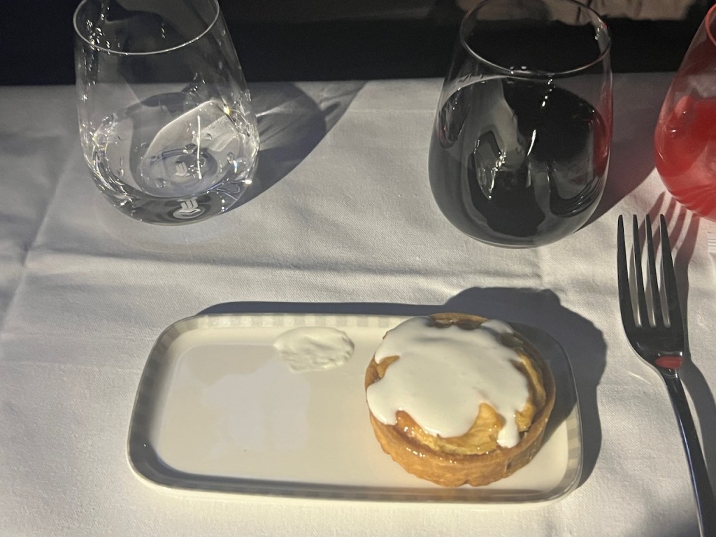 I ended up switching to the 2016 Chateau Marjosse “Entre Deux Mers” – French Bordeaux wine as the Singapore sling was a bit too much sweetness for me. I asked for Apple tart for dessert, but they had run out of it so I ended up with a form of Tirmasu.