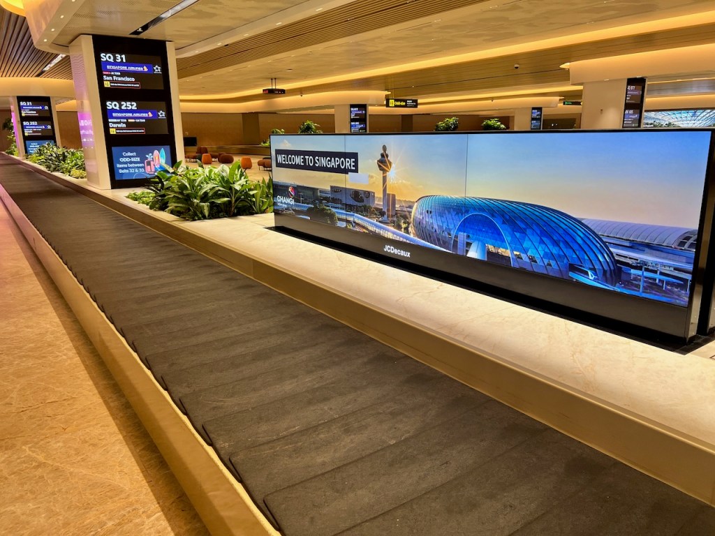 Our checked luggage was dispensed in the arrivals hall. Unusually for efficient Singapore, it took about 35 minutes to reclaim our bags. We had no issues with customs and entered into Singapore and were picked up by relatives.