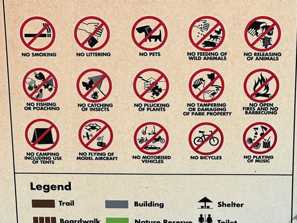 There was also a sign of everything that was prohibited. Being that this was trail was in Singapore, that was a long and entertaining list.