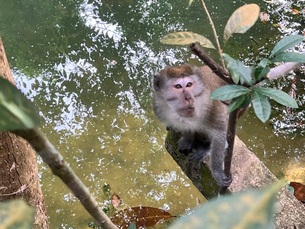 The trail shortly moved along to the edge of the reservoir. This change from jungle to water allowed for some different landscape viewing. We were even able to get in some monkey spotting, which is always great for us visitors. Monkey’s don’t normally form part of the local animal landscapes.