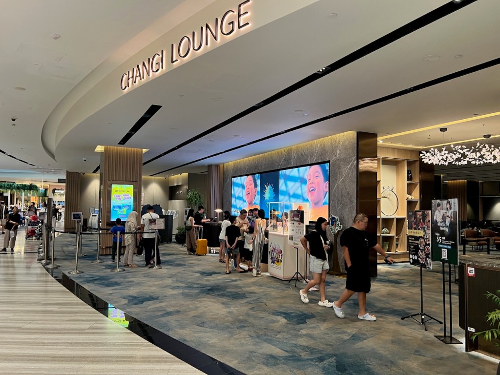 After a few more steps, you’ll find the Changi Lounge at The Jewel on the right. It has a very wide storefront because it shares the reception area with another promotional attraction that is not directly related to the Changi Lounge.