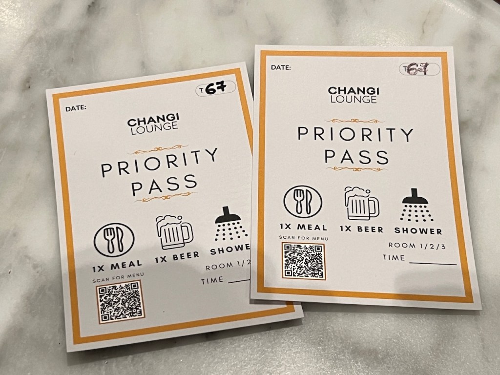 Upon presentation of our digital Priority Pass membership card we were granted premium level access; the highest tier possible. There was no wait at the membership desk and our access was confirmed immediately. We were provided with two coupons so that lounge staff could keep track of who had purchased which corresponding tier.