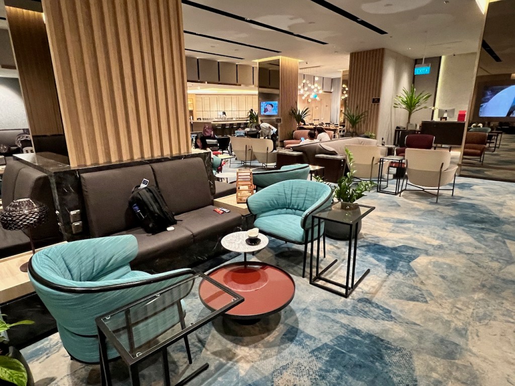 Entering into the main part of the lounge, The Changi Lounge at The Jewel lounge seating area was set up in a large rectangle shape. On the left from the entrance, there were couches and lounge chairs set up in a variety of seating configurations.
