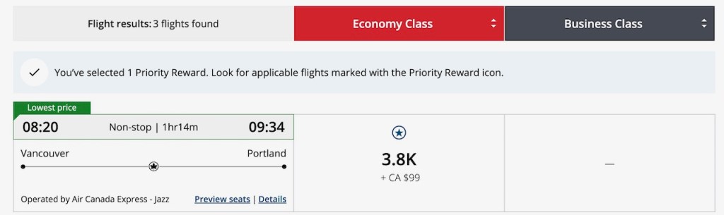Using Aeroplan points, I located the Air Canada Express flight from Vancouver to Portland on their Dash 8 aircraft. Since Air Canada Aeroplan offers a distance based award chart, and with Air Canada Elite Status lead status offering Priority Award vouchers with a 50% mileage reduction, I was locating flights as low as 5000 miles each way. I debated renting a car for the weekend at the Portland International Airport, in order to get around for this adventure.