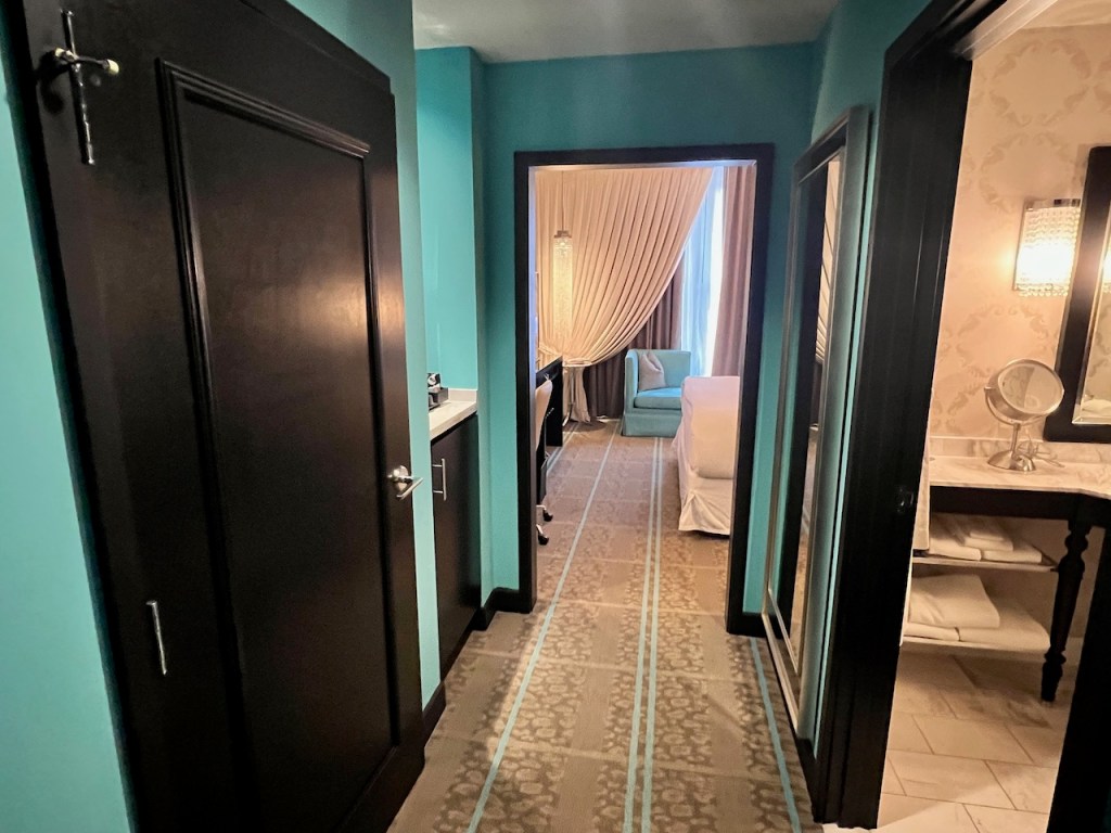 Entering the Deluxe Room, I found myself in a green hallway accented with black. The room presented in very good to excellent condition with an upscale look and feel.