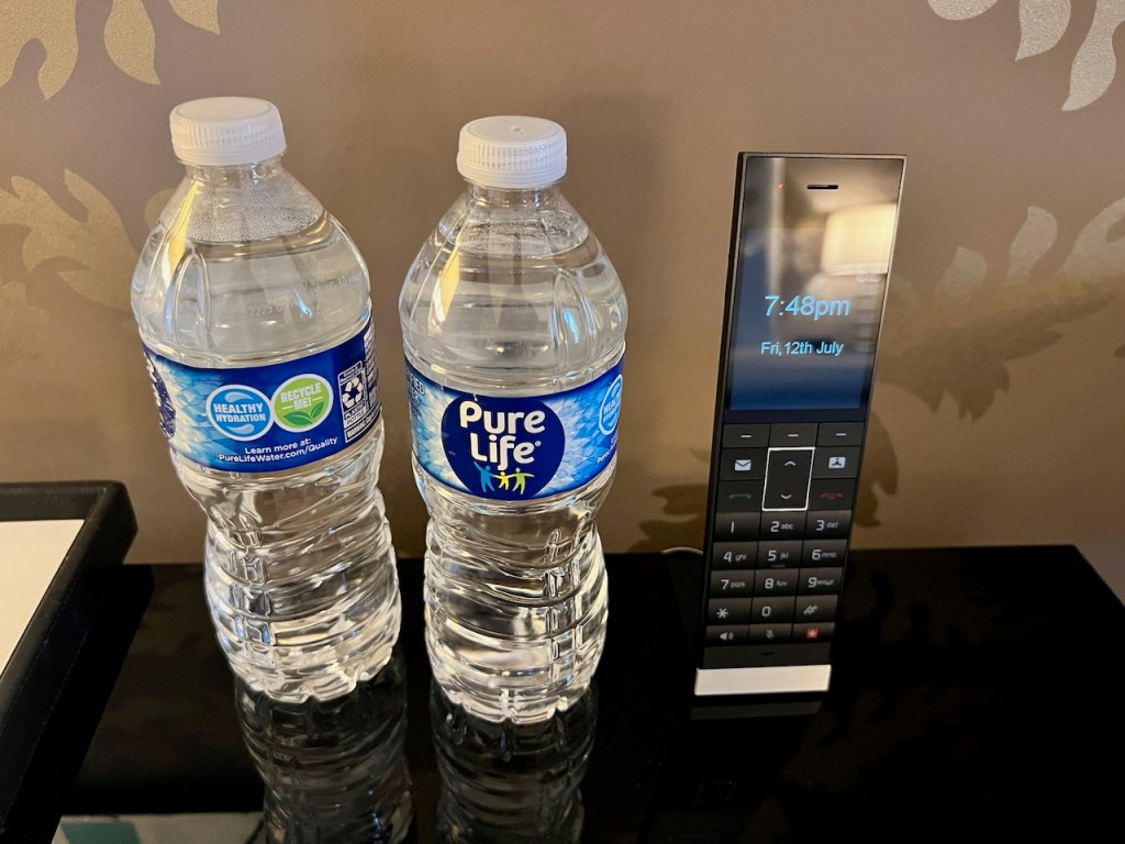 The hotel did provide a few bottles of Nestlé Pure Life water on a complimentary basis. These were not replenished on a daily basis.