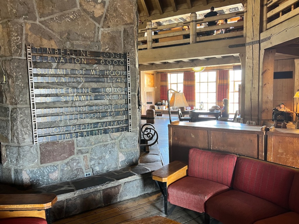 Since I didn’t have a cold six pack with me, or a group of friends to hang out with, I ended up going into the Timberline Lodge. The Timberline Lodge is a historic looking lodge that has been lovingly maintained over the years.