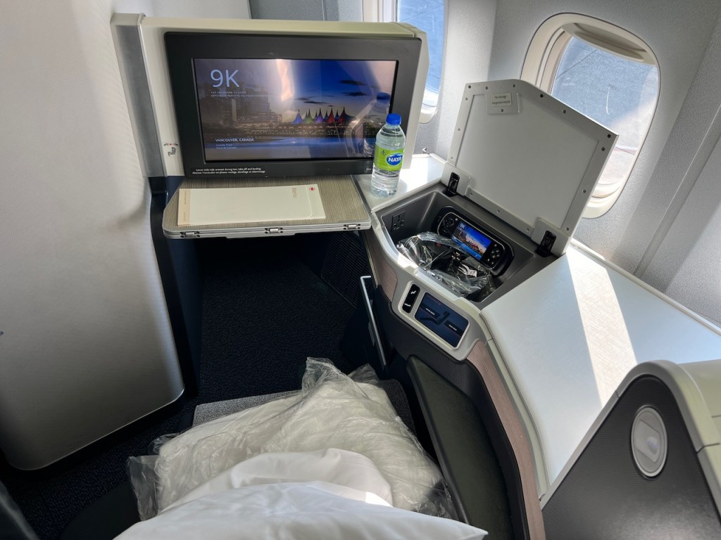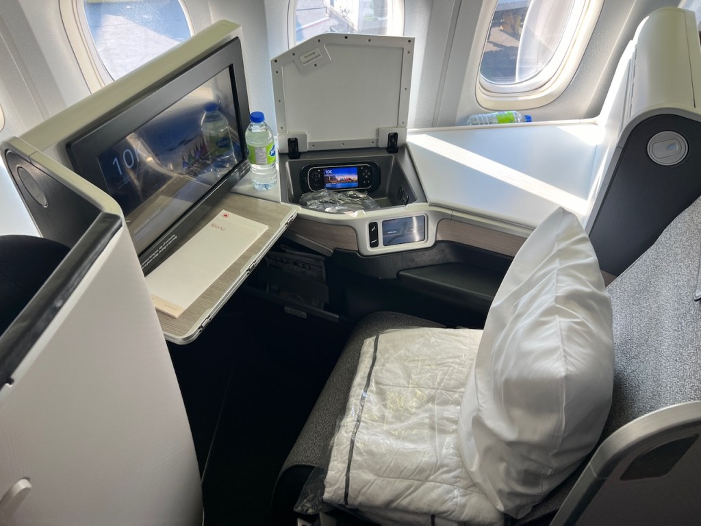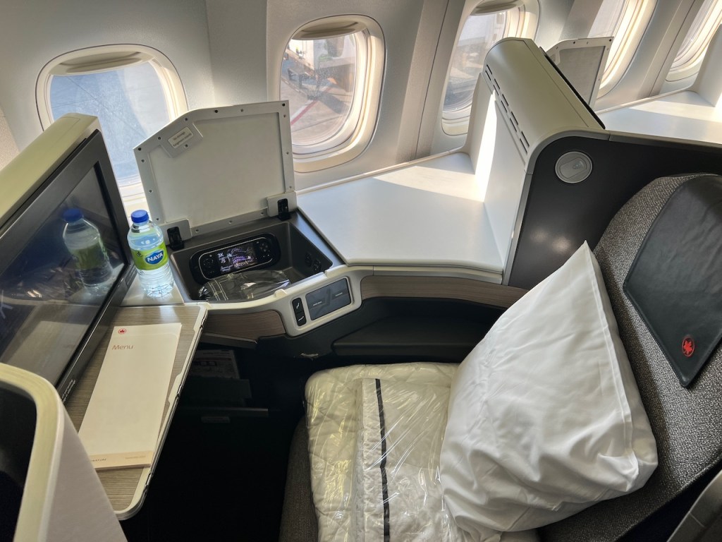 Like most other Air Canada aircraft, this aircraft features the Collins Aerospace Business Class seat, which offers a reverse herringbone fully flat seat. The suite offered a reasonable amount of personal space to allow for relaxing and working.
