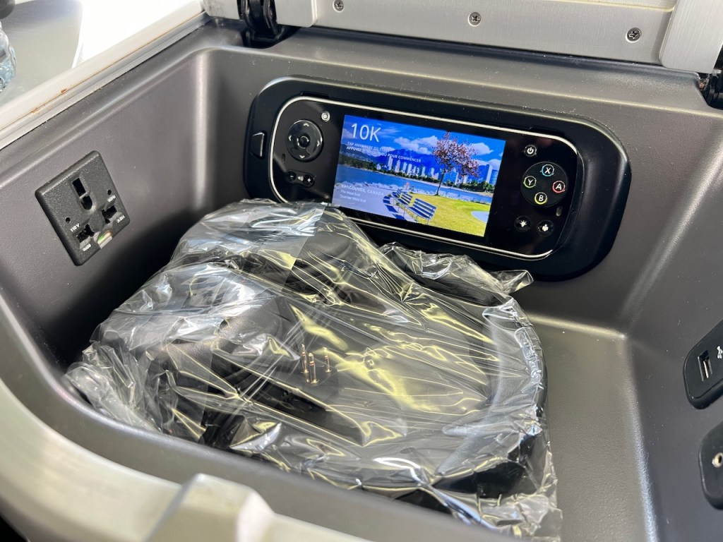 The seat itself also offers a large 18 inch monitor, which is touch screen. It’s typically easier to control the entertainment system through the touch screen.
