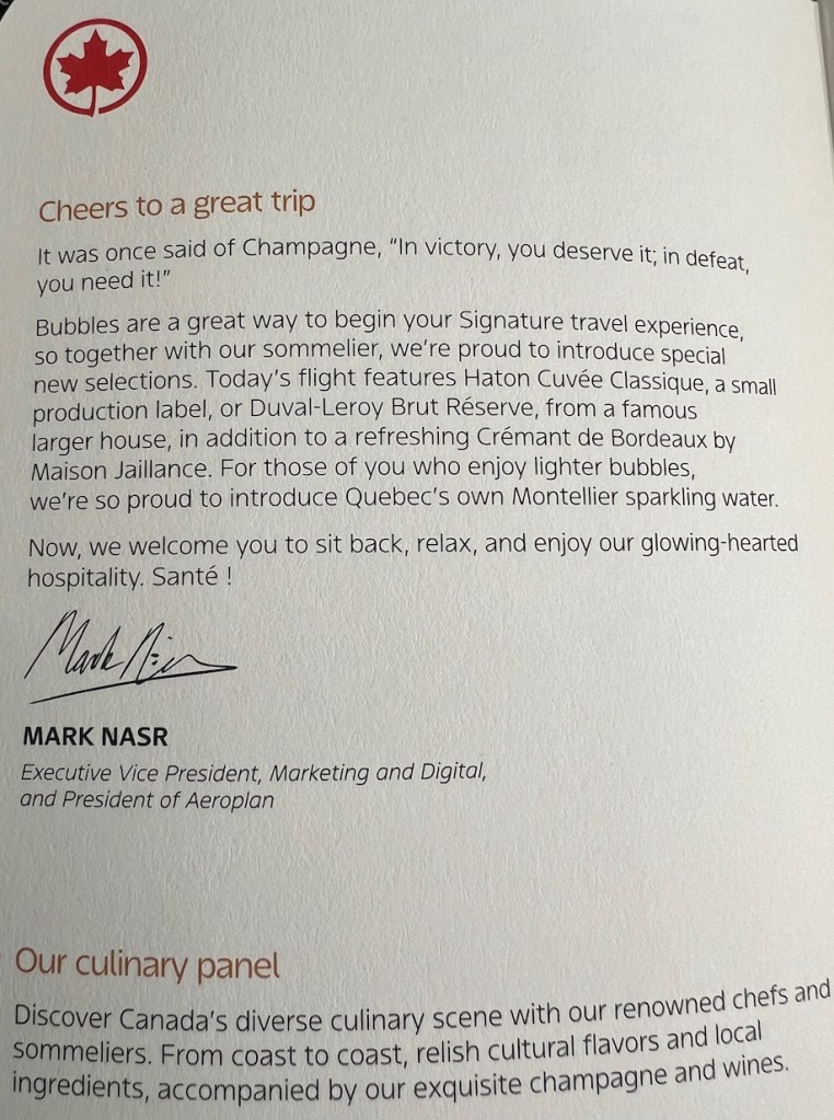While the wine and spirit was much larger than expected in Air Canada Signature Class in comparison to a narrow body flight, the product wasn’t over the top exciting as a result of the fairly mainstream labels.