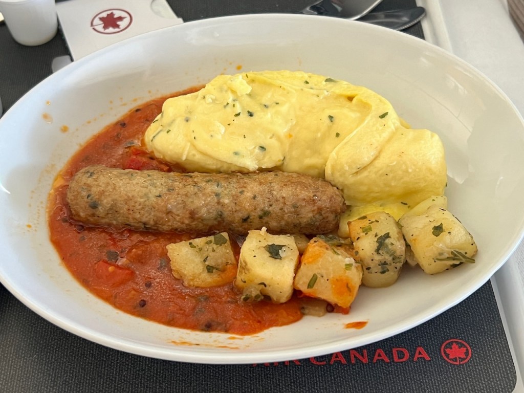 Given the morning hour, the menu consisted of the usual breakfast items. Air Canada is well known for it’s familiar parsley omelette, which made it’s usual appearance along with golden brown pancakes as the alternate option.