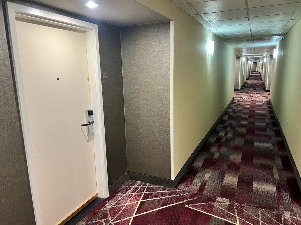 We found our way up to the 8th floor. With all rooms at this property being compact suites, we didn’t receive any further upgrade as a Marriott Bonvoy Titanium. We located our assigned room #819, which was located at the far corner of the floor well away from any hallway noise.