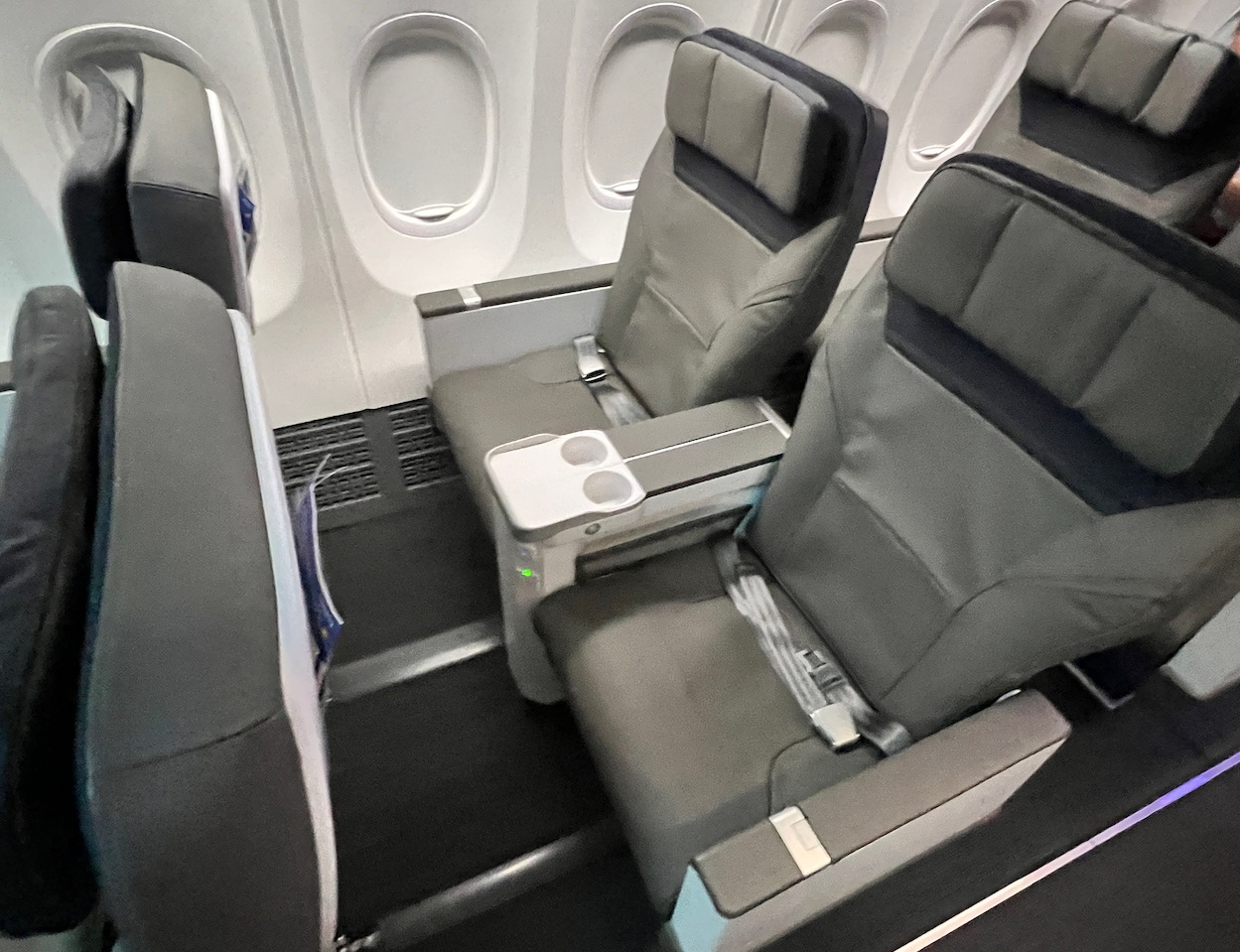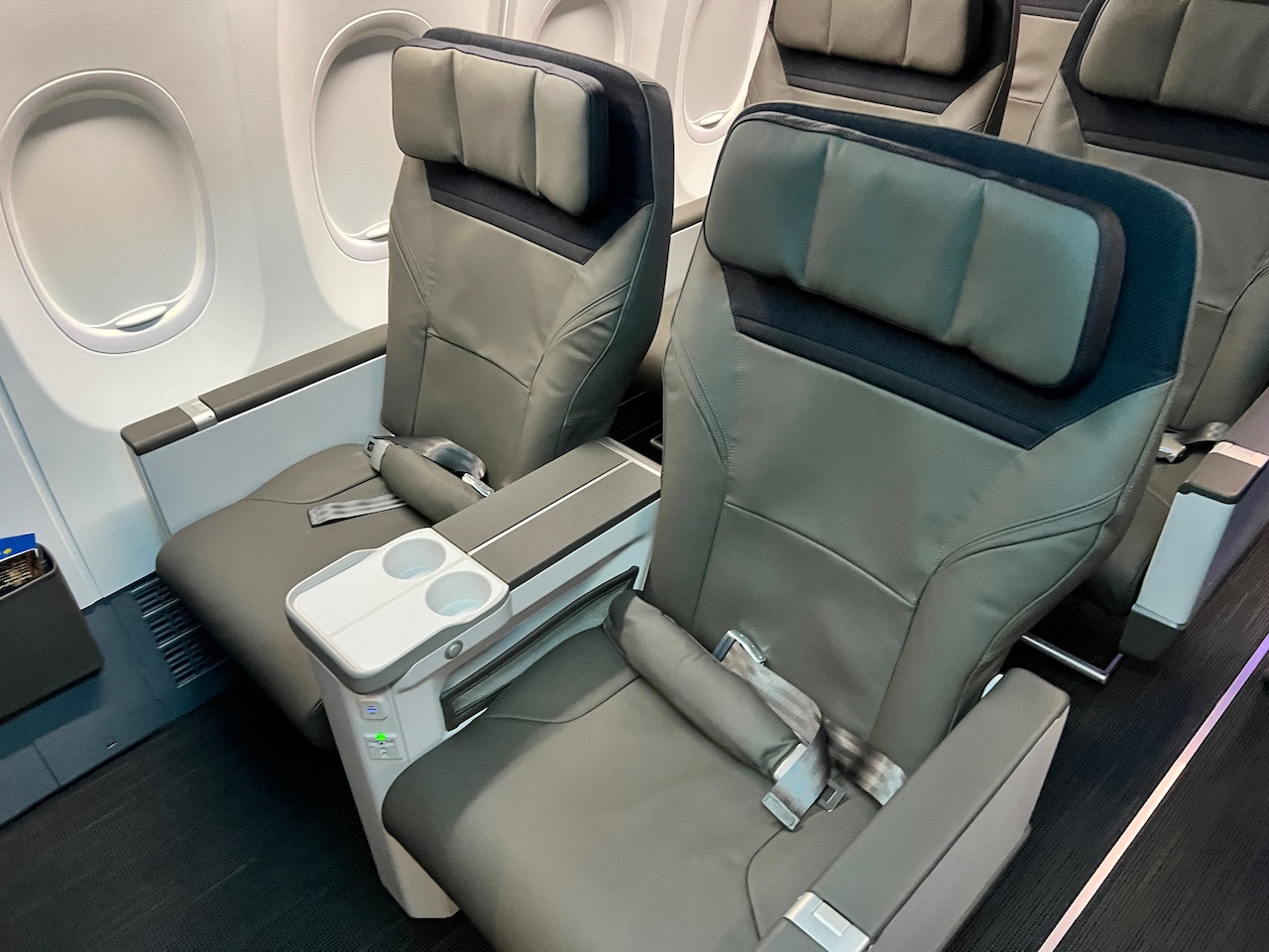 The seats offer a reasonable amount of leg room, although you won’t be blown away by end of the space. It’s much more than you’d expect in economy or premium class.