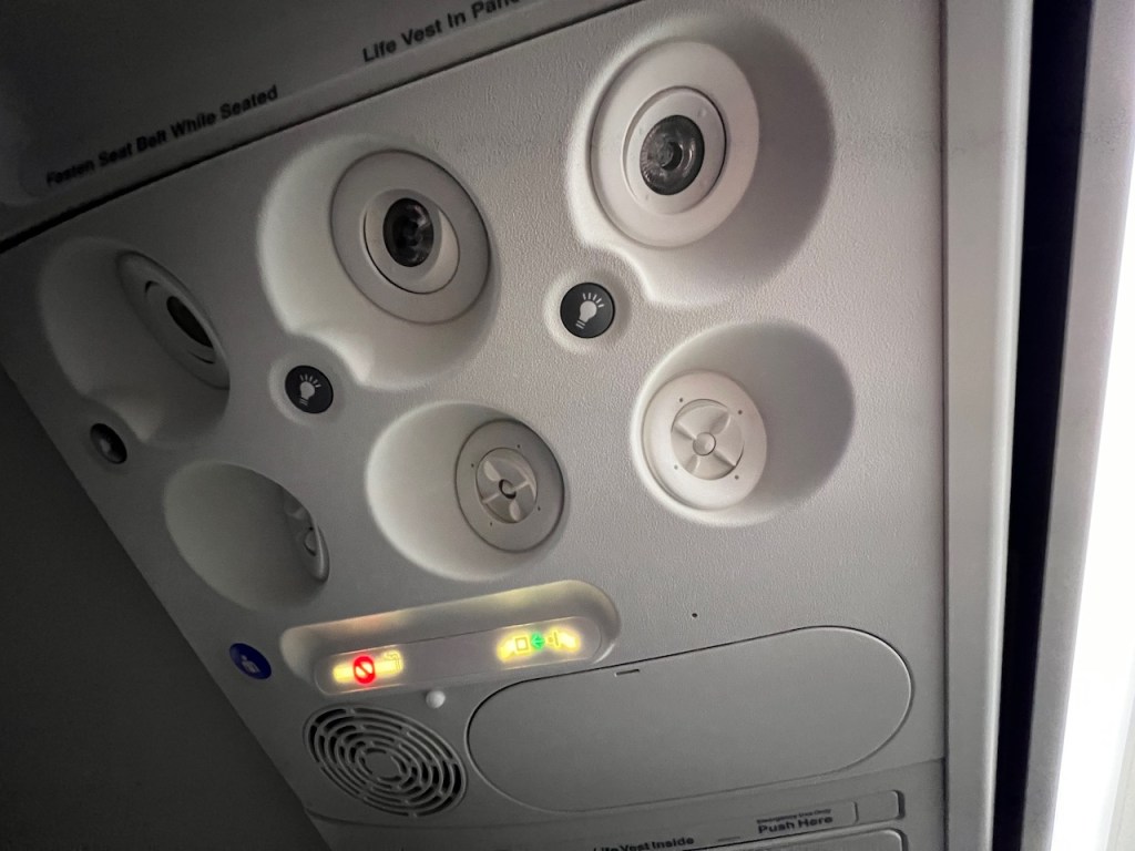 Along with most Boeing products, the Alaska Airlines New First Class Boeing 737-9 Max aircraft offer individual seat nozzles for air. I always appreciate having the ability to adjust my own airflow. It makes the flight much more comfortable, in my humble opinion.
