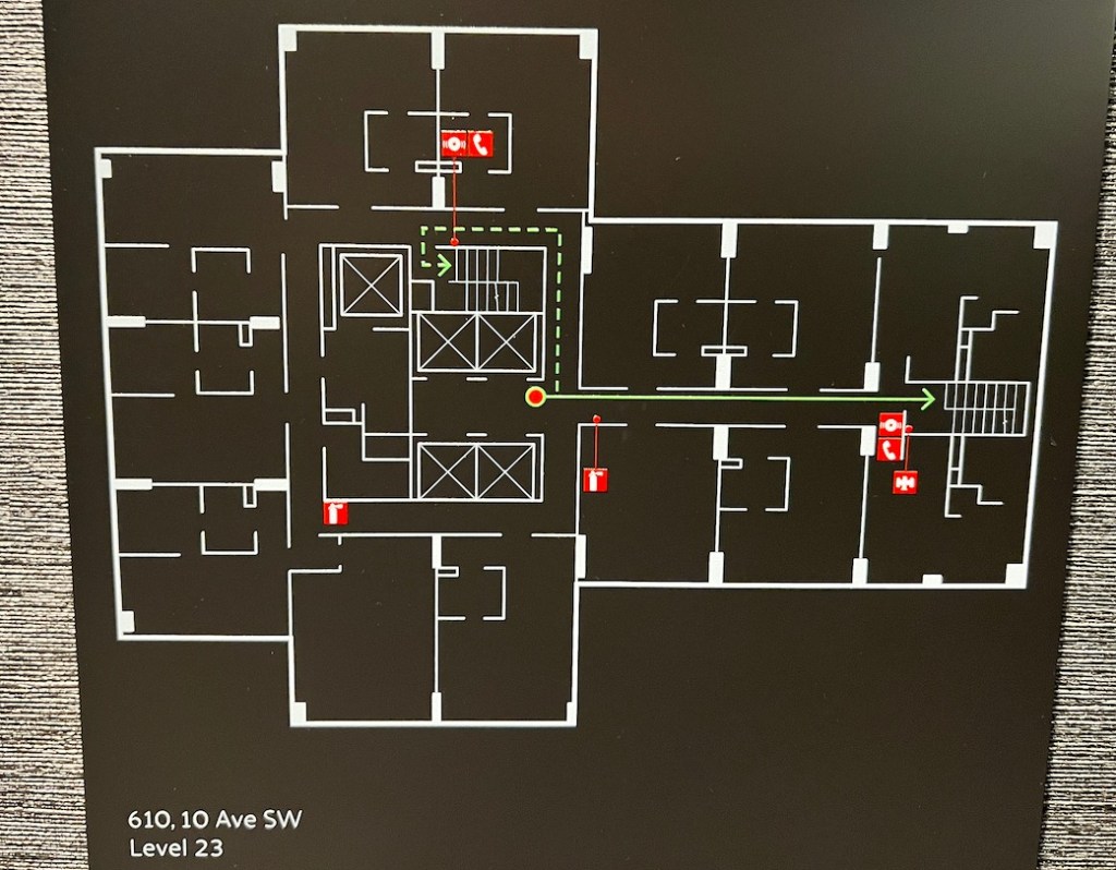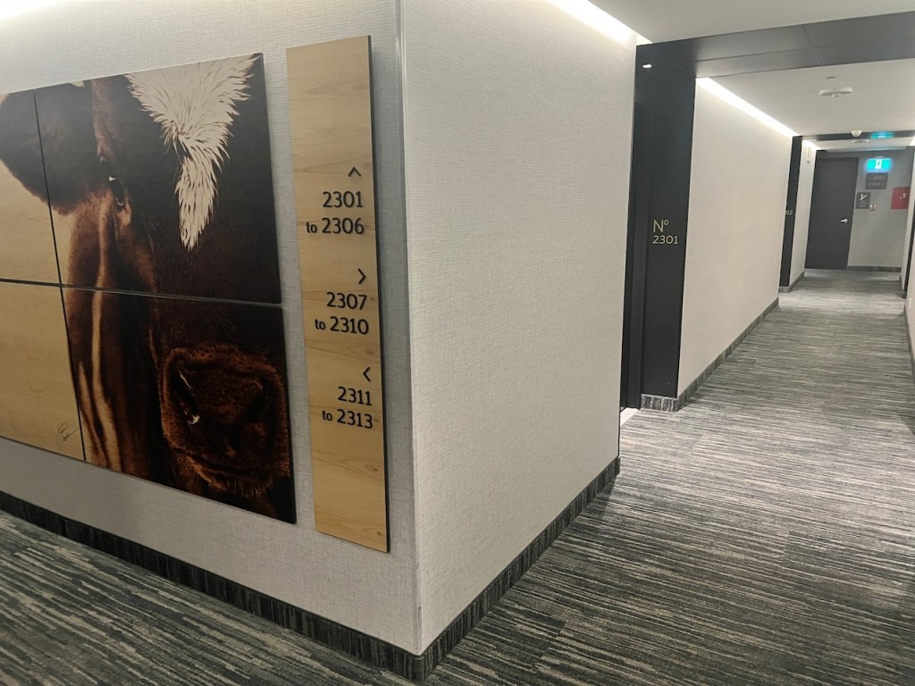 After getting off on the twenty third floor, I wanted back towards room #2311. The floor had an odd layout combining a “U” format and a long hallway.