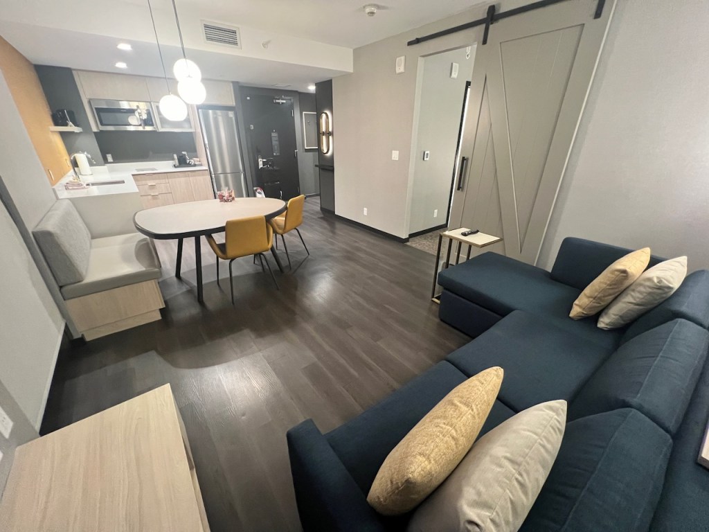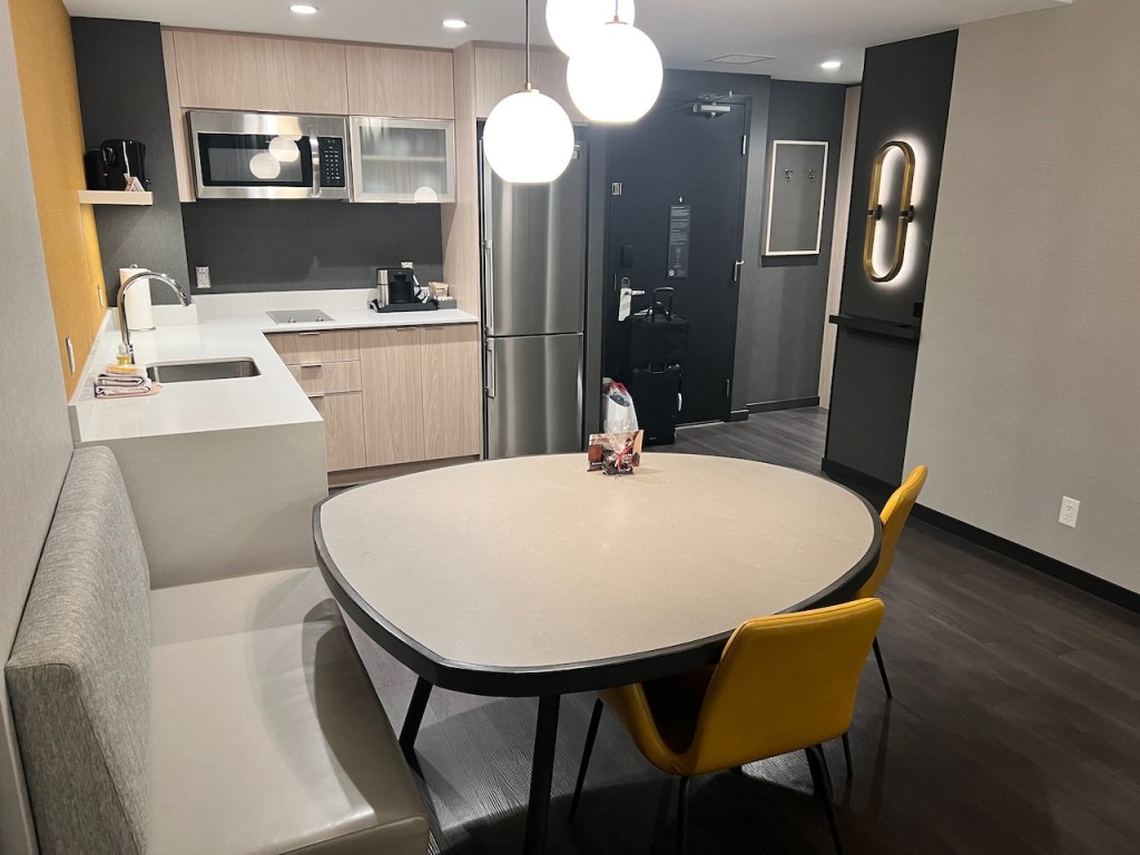 While the room was functional, it was completely brand new with a minimal amount of markings that you’d otherwise expect in an airport hotel. The highlight was the spacious bathroom, along with the availability of actual glassware in the kitchen, and just having that little extra space to stretch out in the living area.