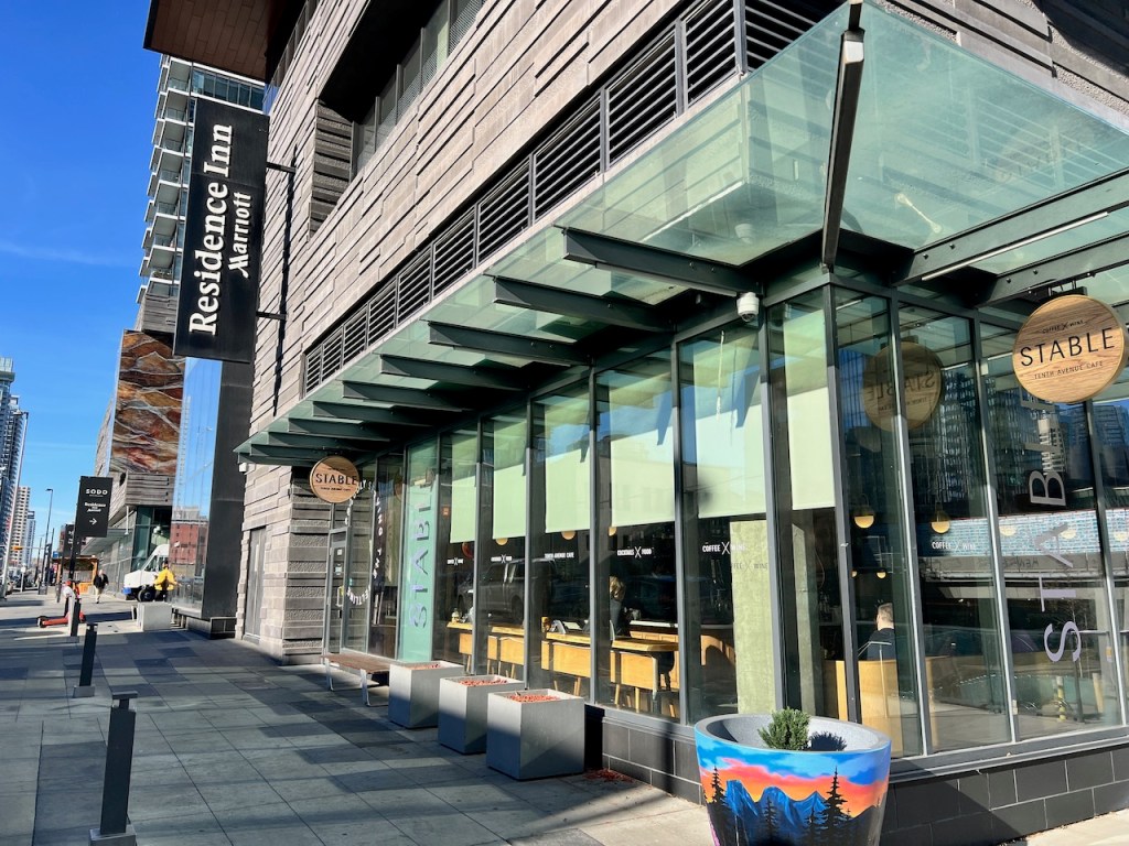 The Residence Inn Calgary Beltline District lobby made a terrific first impression. The spaces offer double story high seatings, along with a small lounge area with access to the hotel’s wine bar restaurant “Stable”.