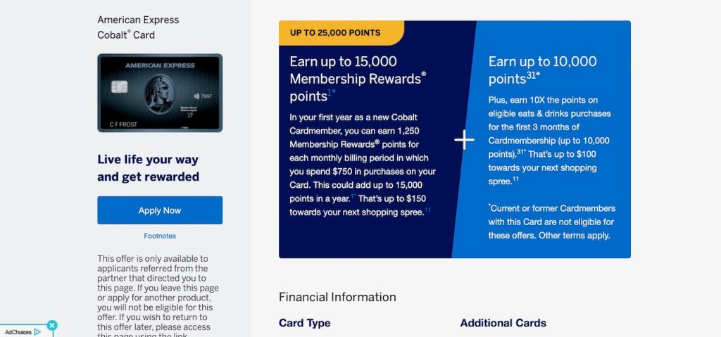 Applying for an American Express Cobalt Card: