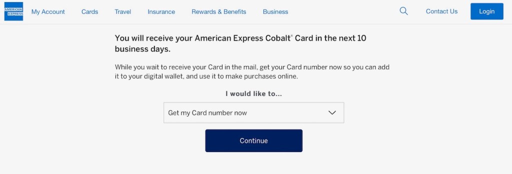 With a long existing history with American Express Canada, my card approval came instantly. I was promised delivery of the American Express Cobalt Card within 10 business days.