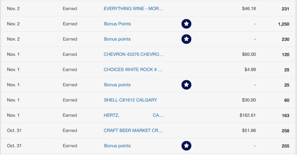 • 2X points on gas, transit and ride share purchases, in Canada.