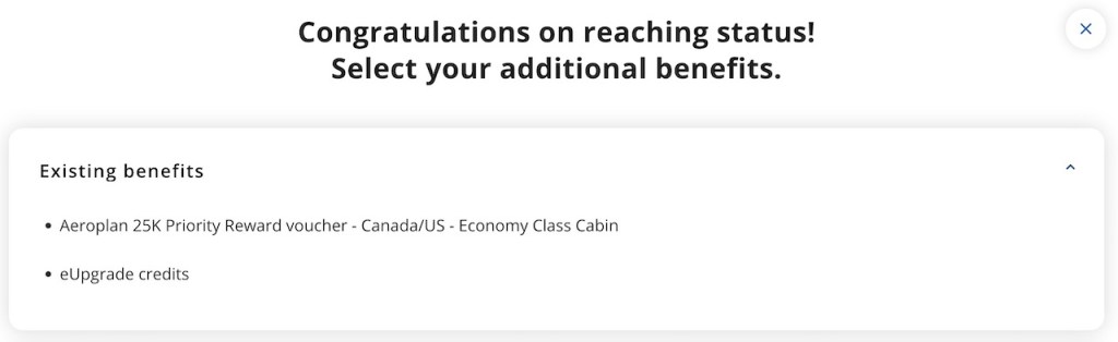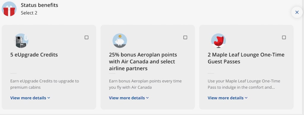 Air Canada 25K offer the choice of additional Select benefits. In my case, I’m offered the choice of the following benefits: