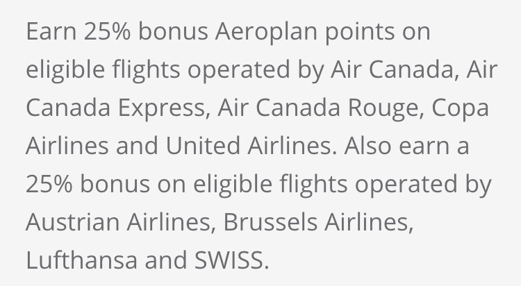 25% bonus Aeroplan points with Air Canada and select airline partners