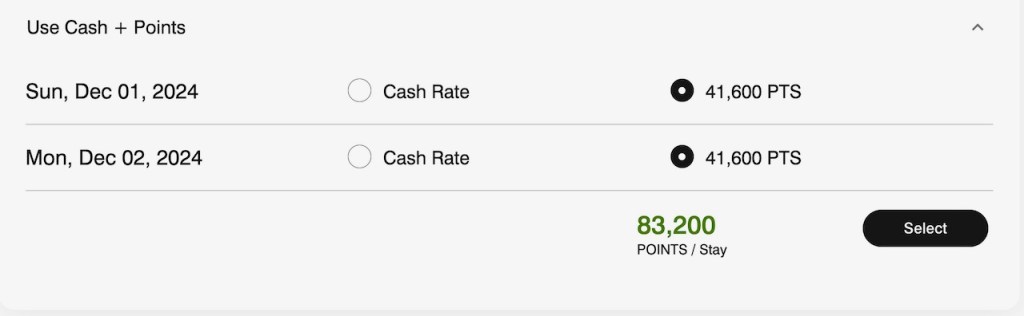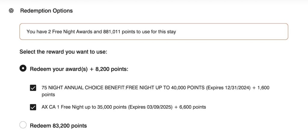 The first booking I used using Marriott Bonvoy American Express Marriott Bonvoy credit card free night certificate. Each of these certificates were good for up to 35,000 points. I used an additional 6,600 points to top off this reservation.