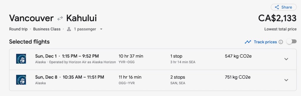 Hawaii is a long way from my home in Vancouver British Columbia, Canada. As a result, business or first class was the only way to go.