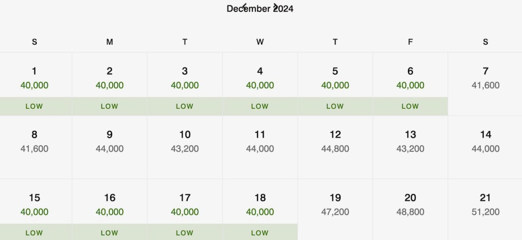 I located the rates using the Marriott Bonvoy flexible date calendar which showed the first week of December being ideal for a visit.