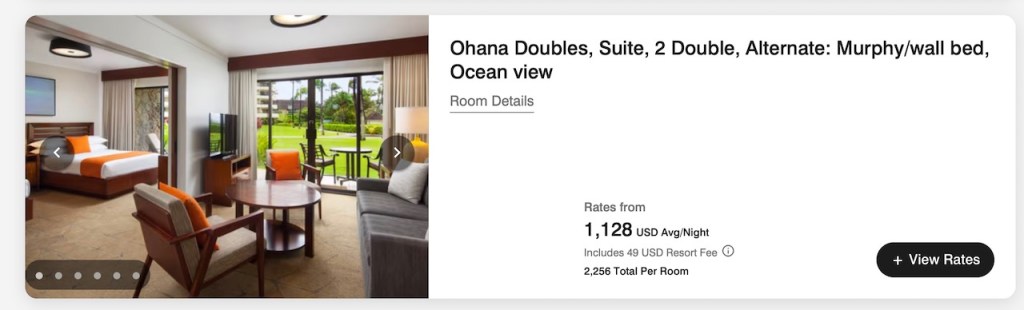 We would end up getting upgraded into our Ohana Double suite valued at $1,128 a night. This represented an excellent value.