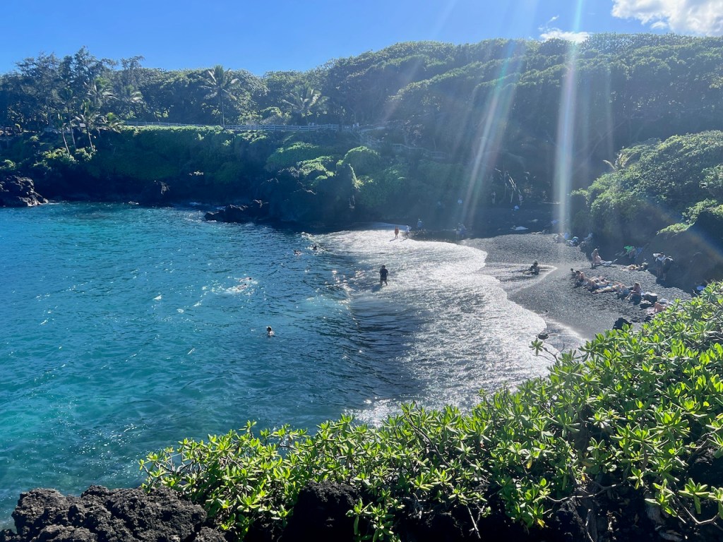 We did take one day to drive the famous Road to Hana that had eluded us for many years, in order to explore the black sand beach.