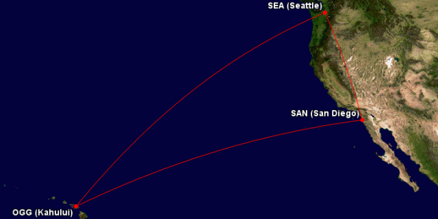 Unfortunately, I wasn’t able to find space returning direct from Maui to Seattle. As a result I ended up flying Maui to San Diego to Seattle. While it was about 2 1/2 hours out of the way, for a large person like myself, it was well worth it to stay in a first class cabin.