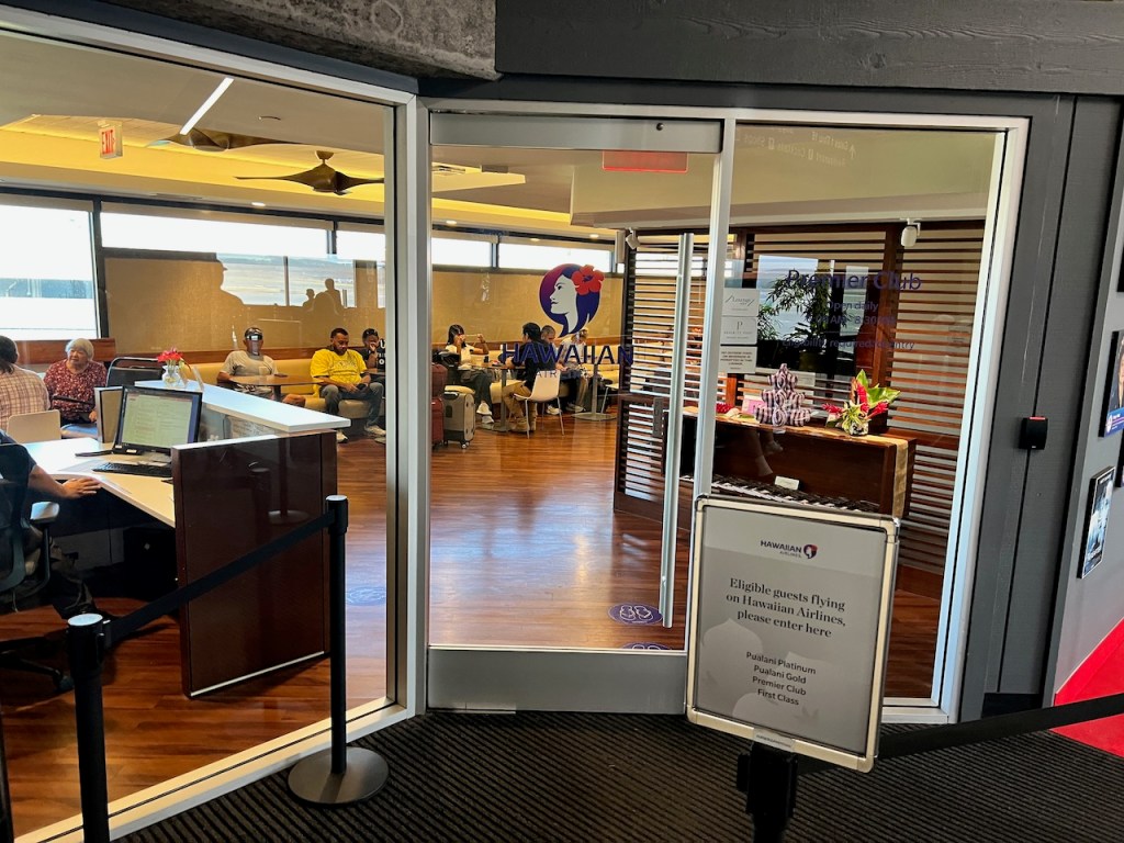 The Hawaiian Airlines Premier Club Maui is discreetly hidden behind the Maui Nui Hall of Fame. If you weren’t looking for the lounge door, you’d be apt to miss the lounge entirely.