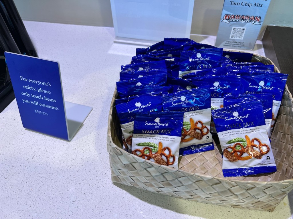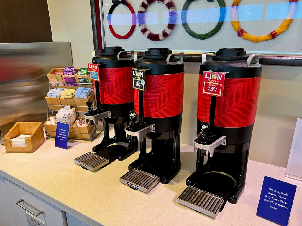 The Hawaiian Airlines Premier Club food and beverage snacks were not super exciting. Snacks were limited to Lion Coffee French and Gold Coast, Teas, packaged pretzels and fountain soft drink served from a multi-plexer. As with other Hawaiian Airlines Lounges, there was no alcohol served.