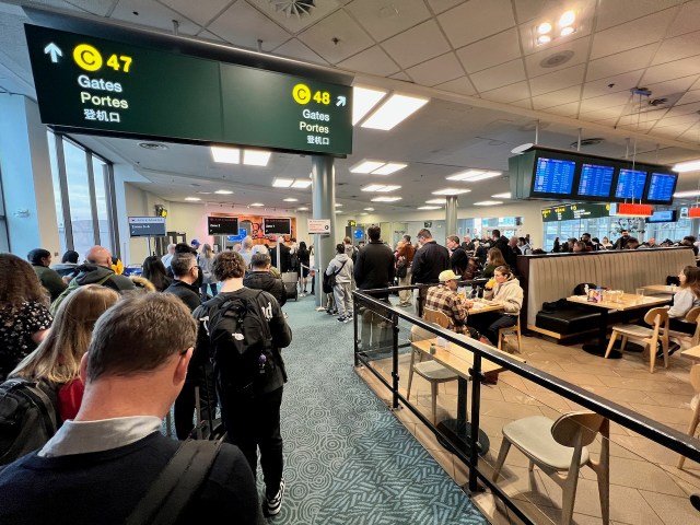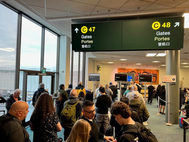 I eventually found my way over to gate C 47 at Vancouver international Airport. Strangely, the Vancouver International Airport authority tends to occasionally use gate C 47 for wide body aircraft departures. In a lack of design, this gate is located tucked away in a corner in a tightly constrained concourse area. As a result there’s always a fellow travellers surrounding the gate area, making for a crowded environment.