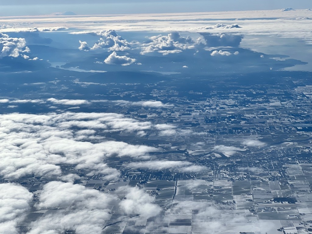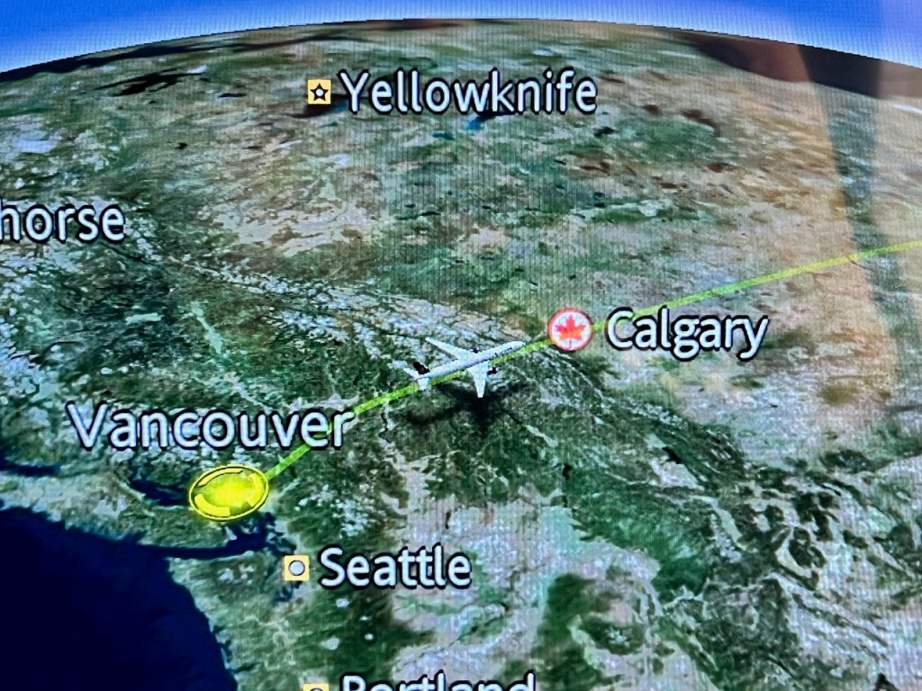We had a slow departure from the Vancouver International Airport. Given that there was snow on the ground, we had to go over for deicing. We then had a departure on runway 08 right. Despite a 9 AM departure, it was well over 10 AM before we hit the runway hold line.