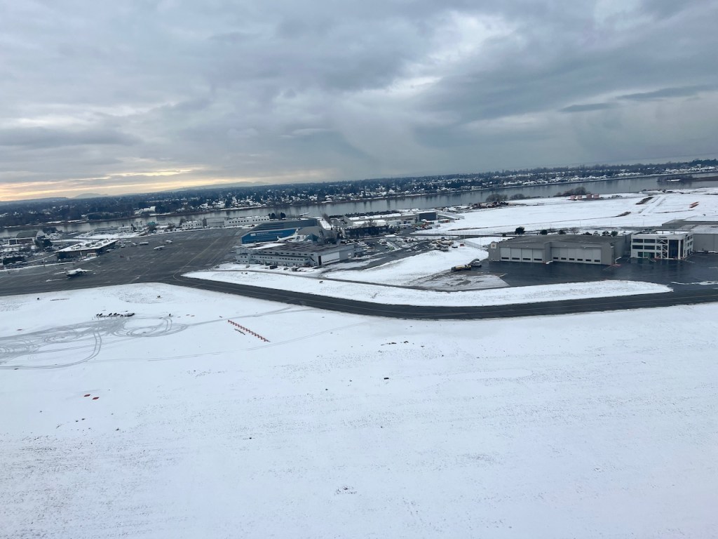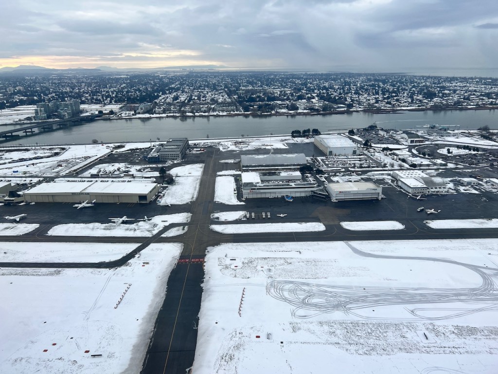 There was snow on the ground at Vancouver International Airport and we had a snowy West Coast departure.