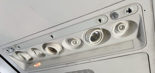 The Canadian North Boeing 737–700 series also had individual air vents located above each passenger seat. I appreciated having a personal air vent as it made for a more comfortable flight.