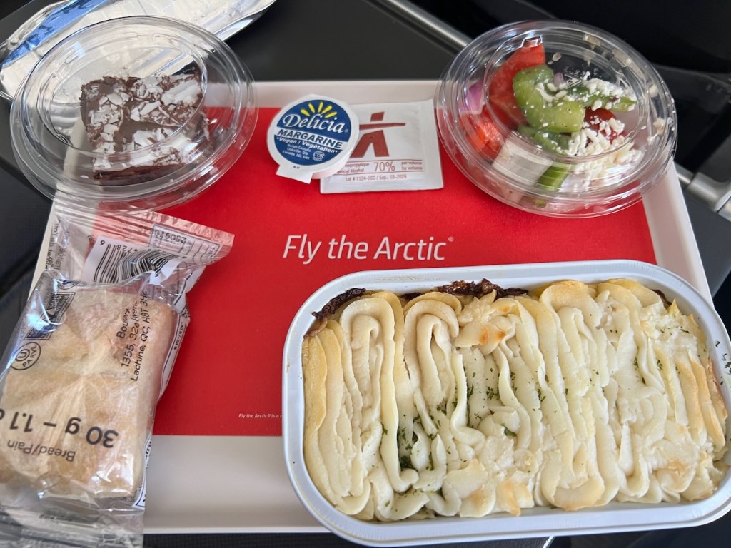After we got to altitude, the in-flight service started. Canadian North does things the old-school way, meaning that every single passenger gets a full meal on a complimentary basis.