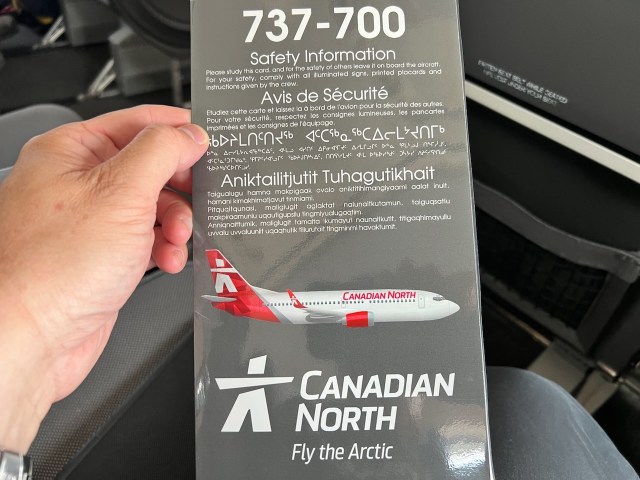 I browsed the safety card, which was published in three official languages; English French and Inuktitut.