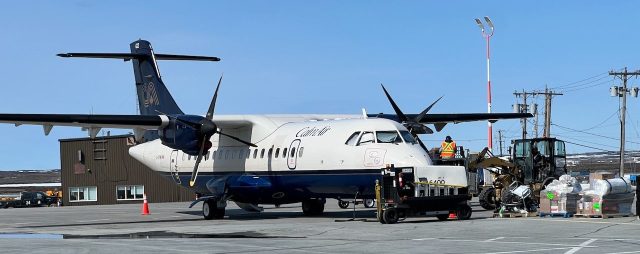 During the stop over, the only other aircraft that was here was a Calm Air ATR 72 that was being loaded up with cargo.