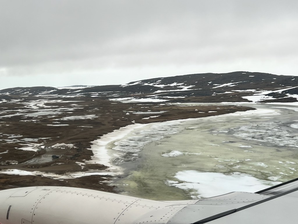 Since Rankin Inlet is located right on Hudsons Bay, it was minutes before we were out over the water. The ice hadn’t completely melted, and there were some great arctic views from the window.