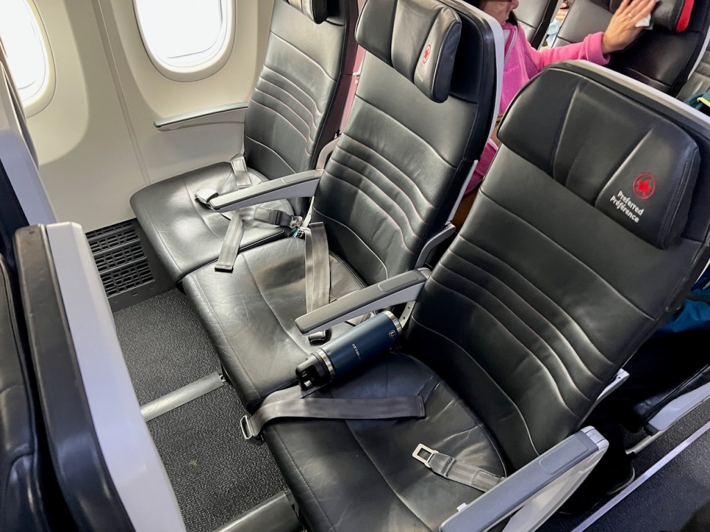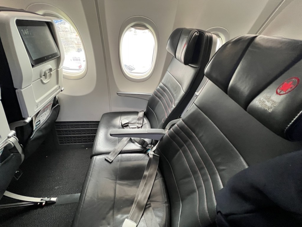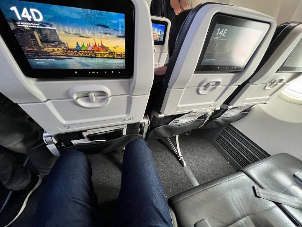The Air Canada Preferred Seat offers a little more legroom. Unfortunately, the seat is still compact in the shoulder and waist area, and as a taller person, I still find it compact and snug in these areas.