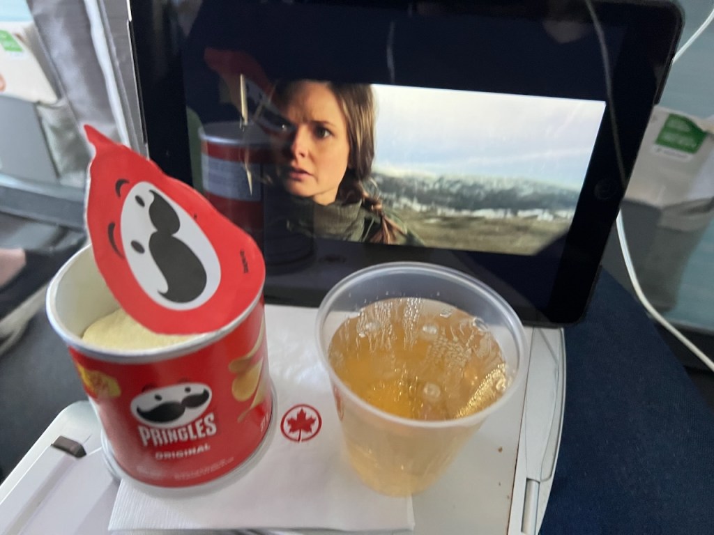 Since the flight time was over four hours, on the second service, I broke down and purchased some Pringles potato chips, along with a ginger ale.