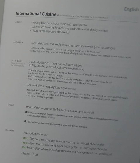 The Menus are organized by being split into Japanese Cuisine or International Cuisine. Following their specialities, I went with their re-owned Japenese Cuisine for today’s flight.