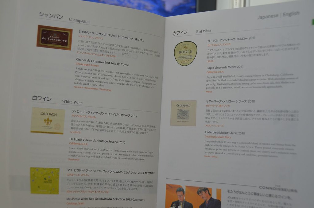 Once at altitude, the lunch menus were promptly dropped off. The menu size was a little large as it contained print for both the inbound NRT-SEA flight and the outbound SEA-NRT flight. MrsWT73 pronounced her dis-satisfaction of the Bogle red wines: “Are you kidding: That’s like a $10 bottle??” She was not overly impressed. I’d have to concur, the wine list was a little lacking. Despite the cheaper wines, during the service, wine bottles were presented for inspection prior to each wine pour.