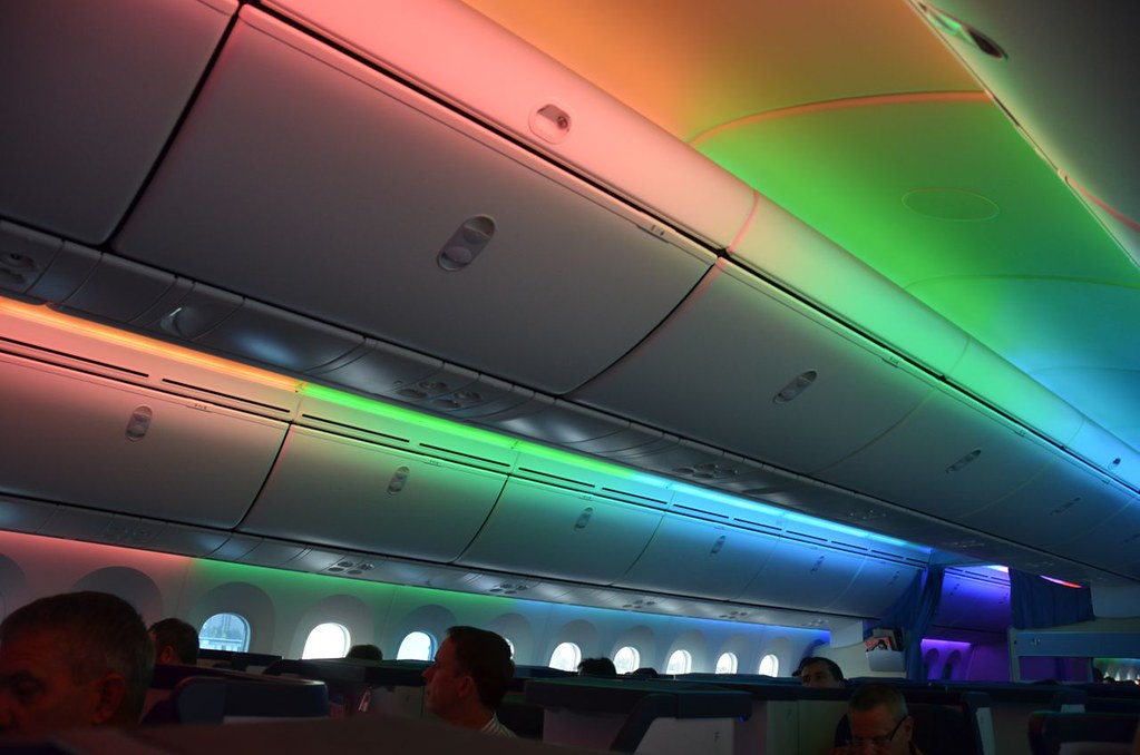 ANA has coloured ceilings on their flights which are best described as rainbow styled. It’s not too my liking but some may find it “Hello Kitty” tasteful.