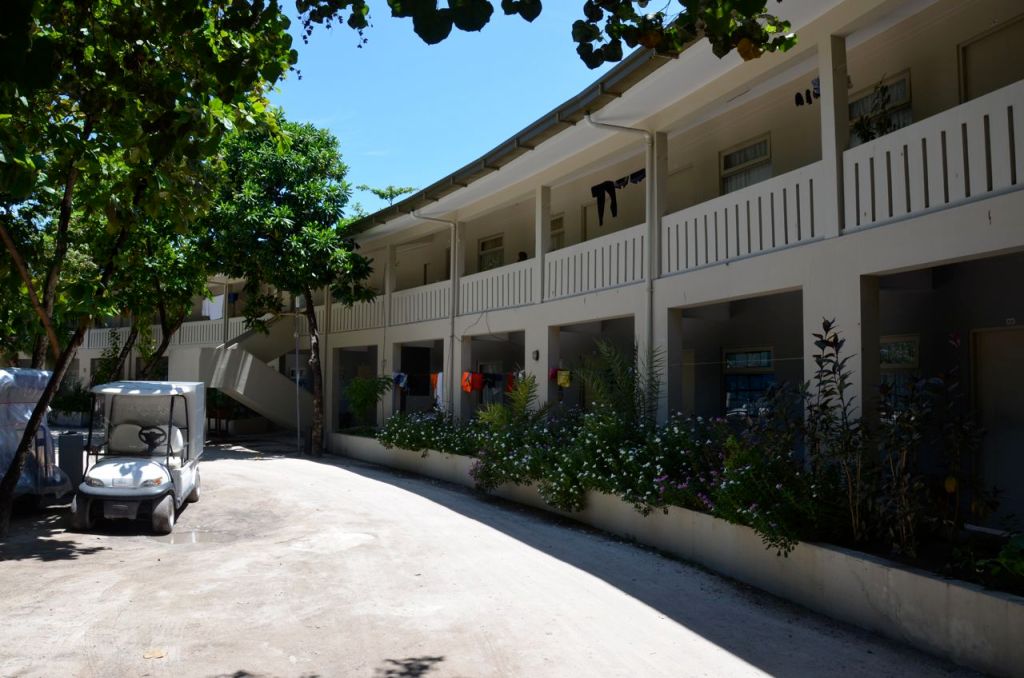The back of house is in the center of the island of Hadahaa. The staff compound is in a circular format. There are up to 175 staff working for the Park Hyatt Maldives (including the part time ones; gardners, plumbers etc) and 90 staff living on site. Most of the staff are double, if not dormitory style bunked.