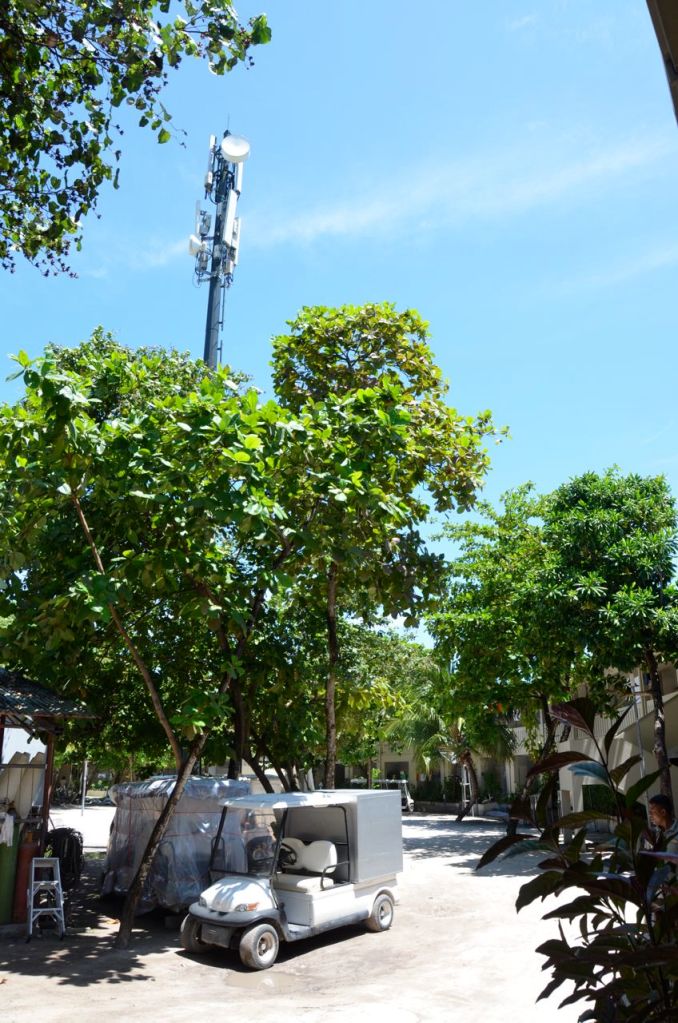 There was also a large cell tower in the middle of the island for all of the digital communications. They’ve done such a good job hiding this thing, because it’s not visible from other parts of the island unless you are looking for it. Overall, I found the cellular coverage good to very good throughout the villas. I didn’t use Skype or VOIP, or download movies, but the coverage for email was excellent.