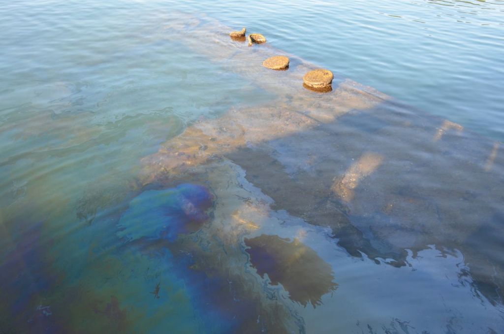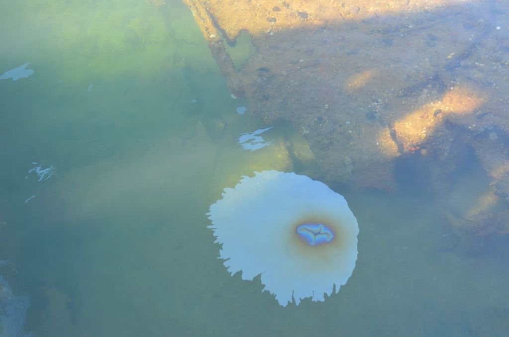 Looking closely at the waters surrounding the ship, you could also see the “Tears of the Arizona”- small droplets of oil that continue to leak into the harbour, staining the waters.